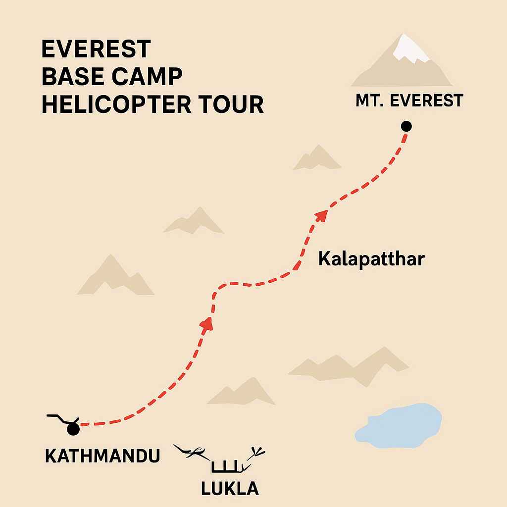 | Stops & Landings | Lukla, Everest View Hotel, Pheriche, Kalapathar Hill; flyovers: Everest Base Camp, Khumbu Icefall, Camp 1 |